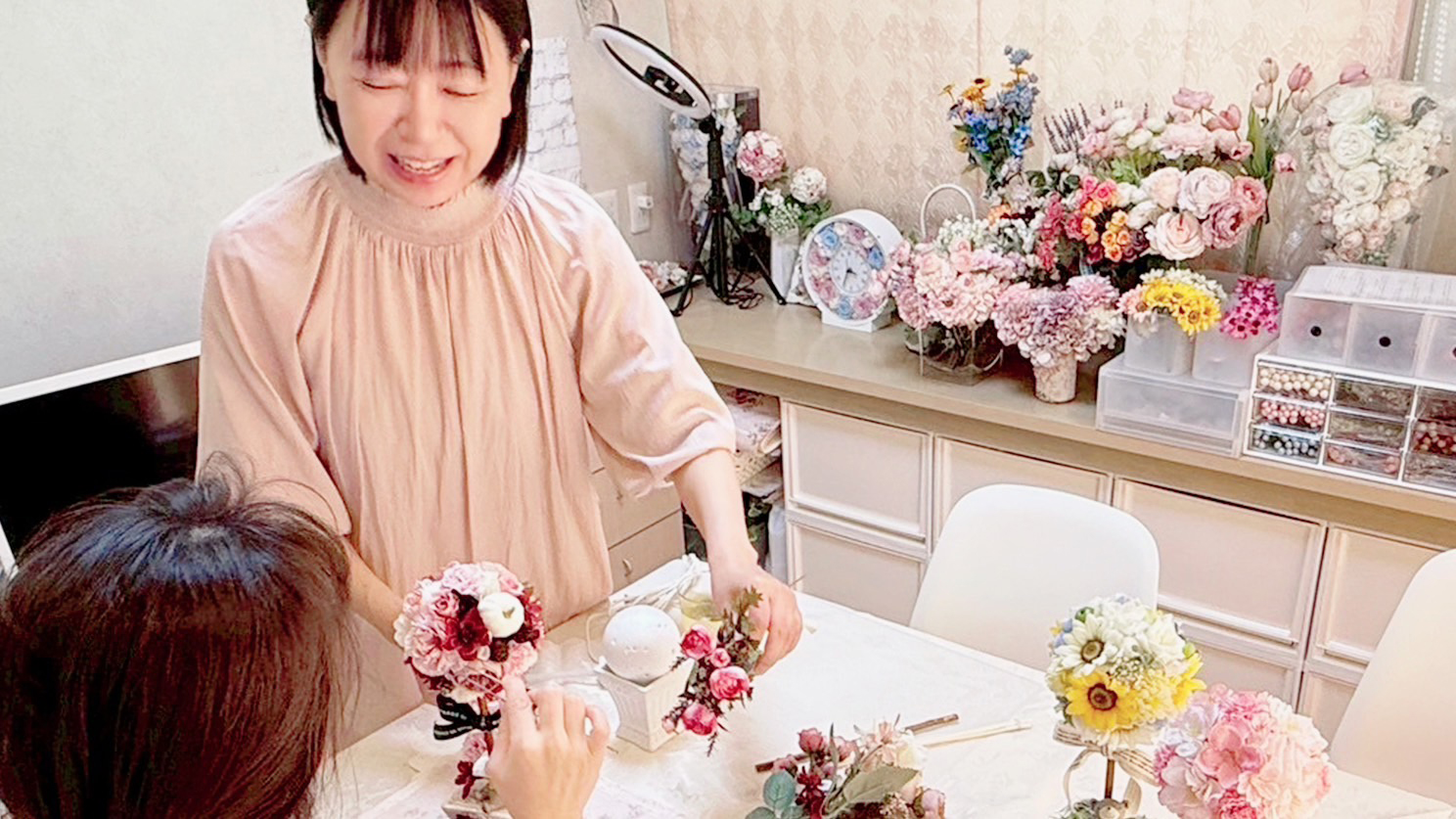 ネットショップやSNSでの発信に教室開校まで。フラワー作家としての道を着実に歩んでいます。