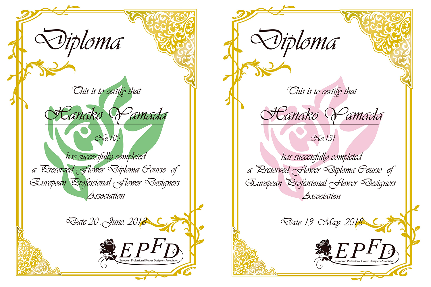 EPFD協会でディプロマを取得された方は趣味の延長としてご受講される方と、将来的なビジネスを考えてご受講される方がいらっしゃいます。 資格取得関係なく、単品レッスン金額も設定しておりますので、お好みのアレンジ1作品を受講することも可能です。